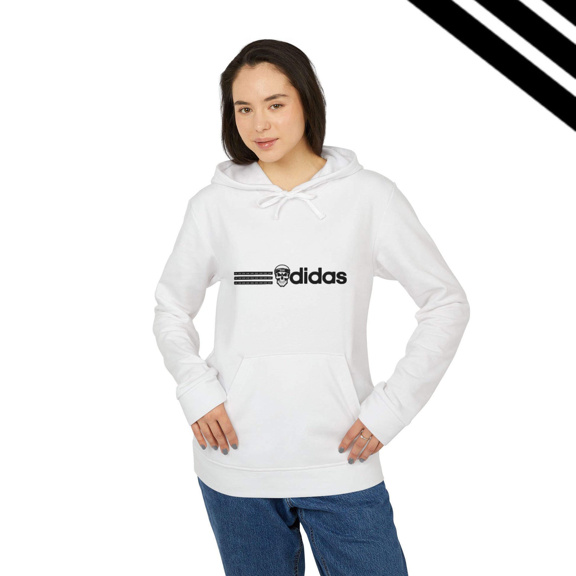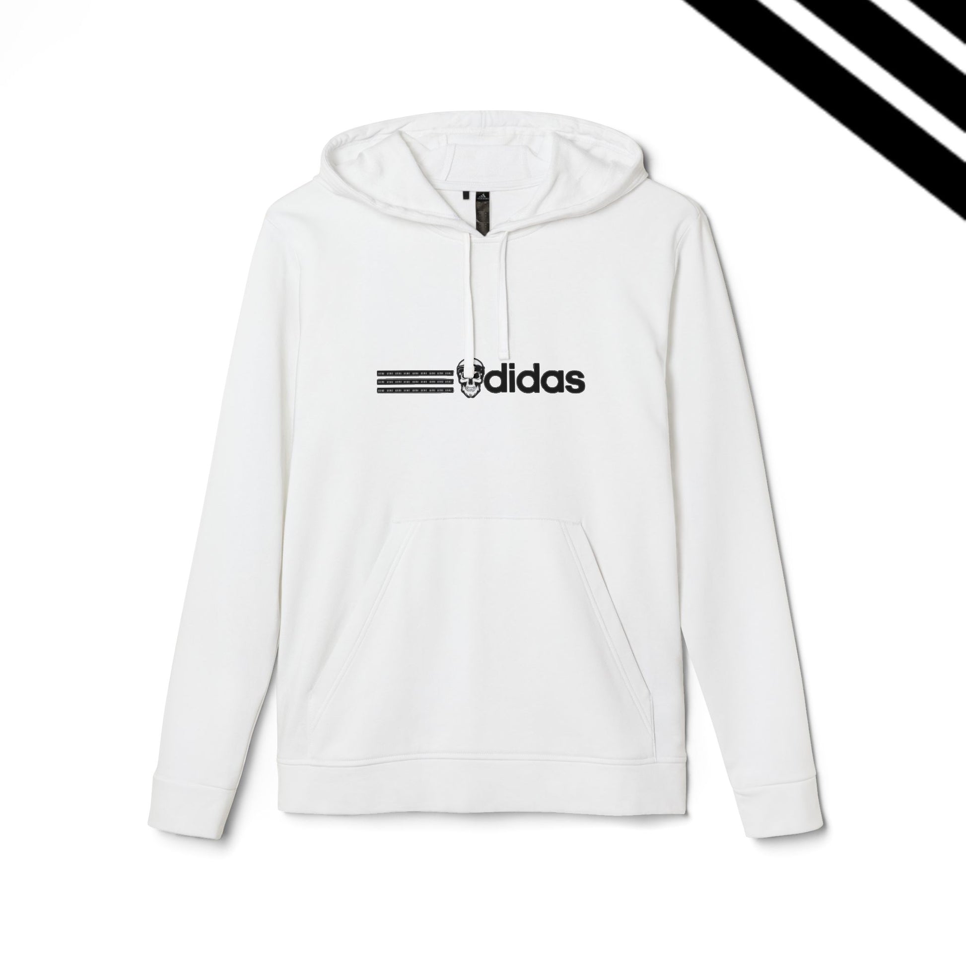 Combining comfort with sustainability, this Adidas-SCBC Merge Collection. "Year 4030" fleece hoodie redefines cozy cool. Crafted from a blend of 70% BCI cotton and 30% recycled polyester (Dark Grey Heather variation features a 55/45 polyester/cotton mix), it prioritizes eco-friendly materials without sacrificing softness or warmth. Equipped with a practical 3-panel hood complete with drawcord and a convenient pouch pocket so that it's as functional as it is stylish. Elevating its street-ready appeal, the contrasting Adidas logo adorns the right arm, making a bold statement of athletic authenticity.