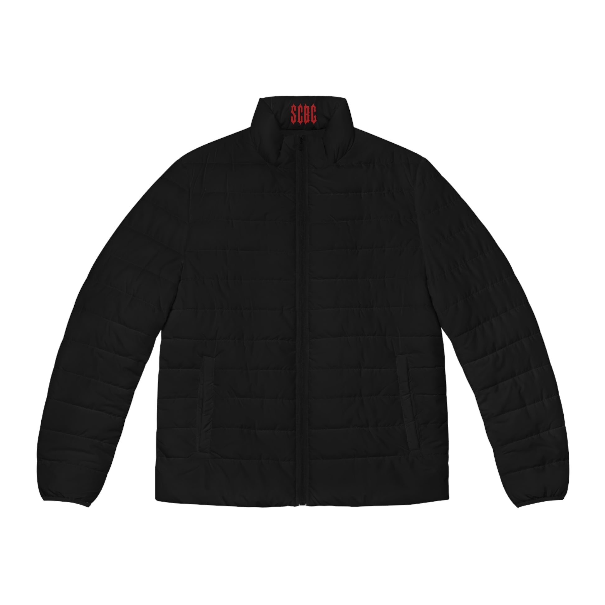 This lightweight puffer brings a dark, edgy energy to chilly nights. Quilted panels and a stand-up collar trap warmth while keeping the silhouette sleek. The black, cotton-like lining feels soft against the skin and wicks moisture, so it wears comfortably whether you're commuting through damp streets or stepping into a late-night show. Two roomy front pockets hold small essentials, and the durable zipper with metal puller stands up to repeated use. The back features bold, graphic artwork that reads like a scene from an underground poster—the dripping red motif and exposed teeth give the jacket an unmistakable attitude. Wear it layered over a hoodie or alone as a statement piece when you want to lean into a raw, urban look.