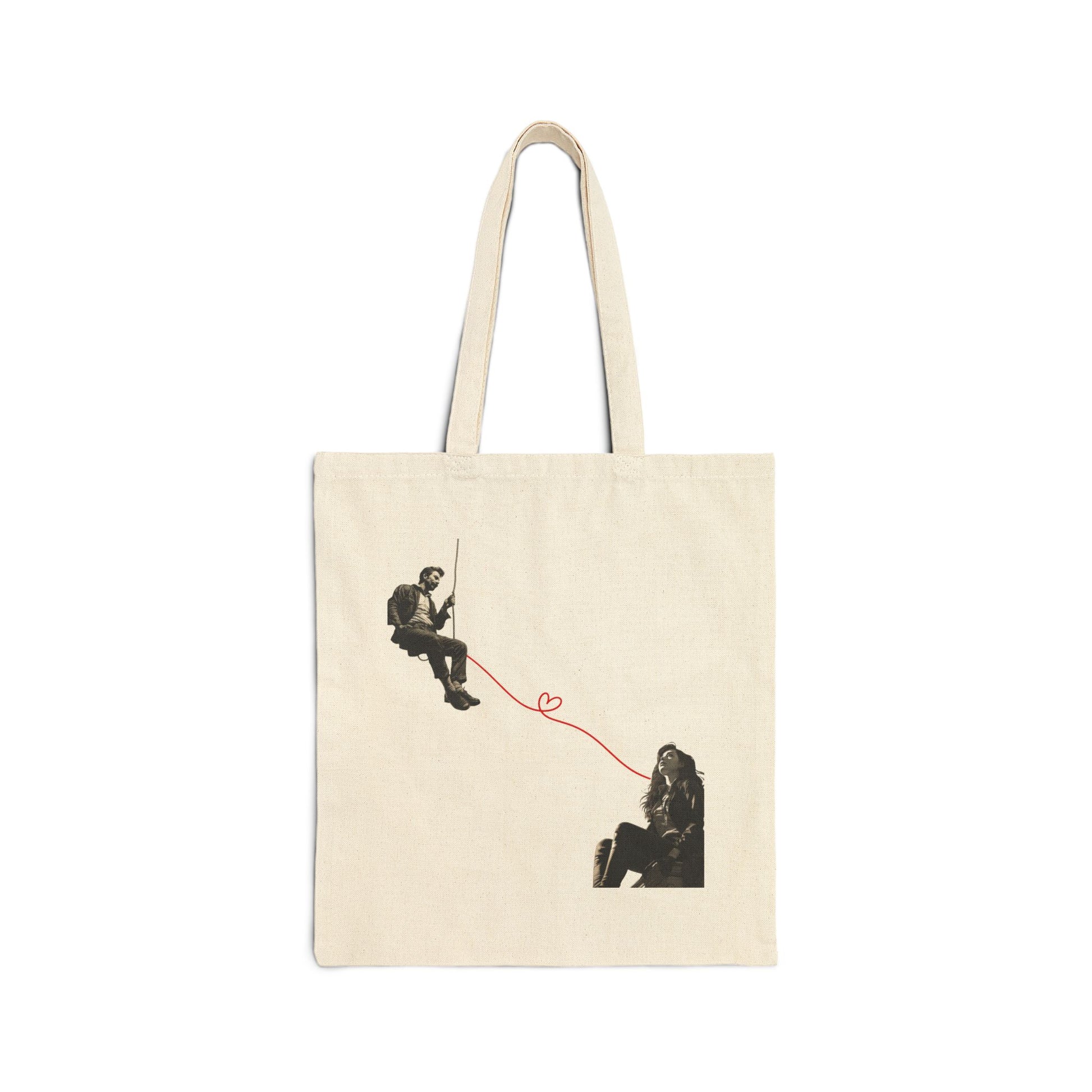 This 100% Cotton "Distant Lovers" Tote Bag comes in one size – 15" x 16"– perfect for everyday wear. While the canvas material will show off this design in great detail, it's durable and will last for years. The bag features 20" handles (made from the same canvas), making it easy to carry even with a week's worth of shopping.