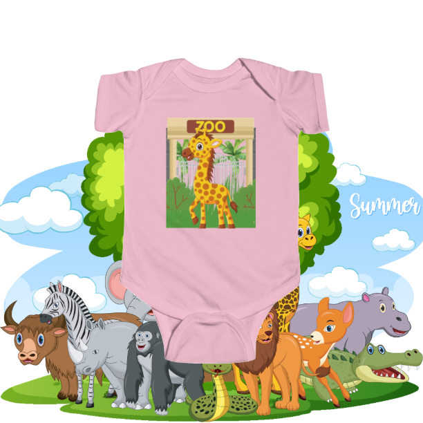 Baby clothing needs to be both durable and soft. With the Infant "Giraffe" Fine Jersey Onesie, youths get just that. The fabric is 100% cotton for solid colors. For heather colors, polyester is included. There are seams along the sides of this product. All bindings are made with ribbed knitting for improved durability. There are plastic snaps at the cross closure for easy changing access.