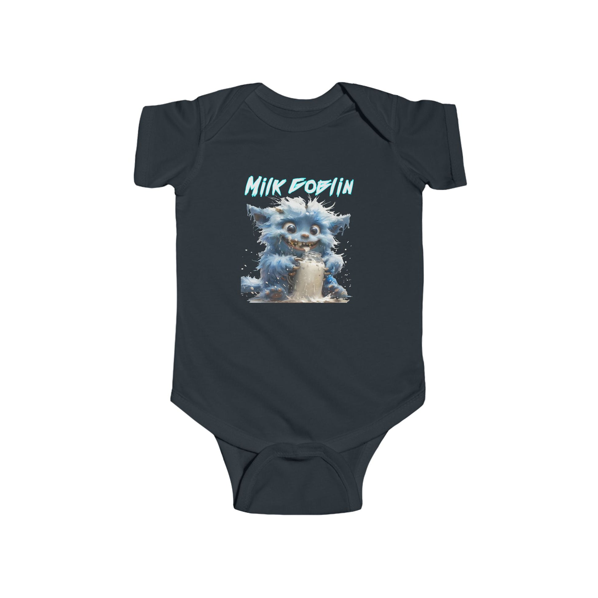Baby clothing needs to be both durable and soft. With the SCBC Infant "Milk Goblin" Fine Jersey Onesie, youths get just that. The fabric is 100% cotton for solid colors. For heather colors, polyester is included. There are seams along the sides of this product. All bindings are made with ribbed knitting for improved durability. There are plastic snaps at the cross closure for easy changing access.