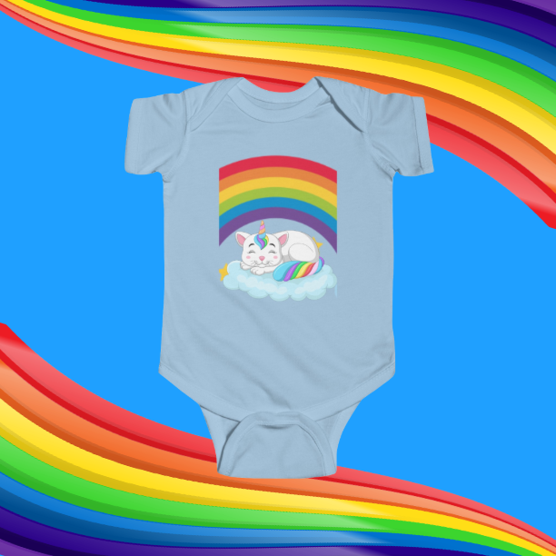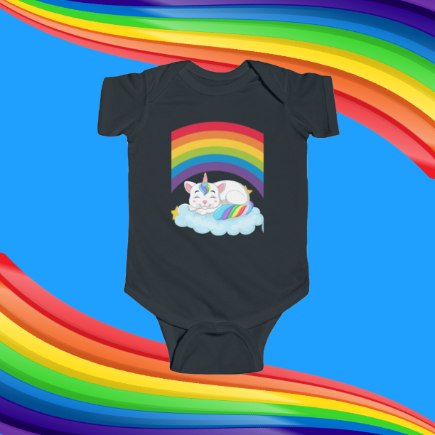 Baby clothing needs to be both durable and soft. With the Infant "Unicorn Dreams" Fine Jersey Onesie, youths get just that. The fabric is 100% cotton for solid colors. For heather colors, polyester is included. There are seams along the sides of this product. All bindings are made with ribbed knitting for improved durability. There are plastic snaps at the cross closure for easy changing access.