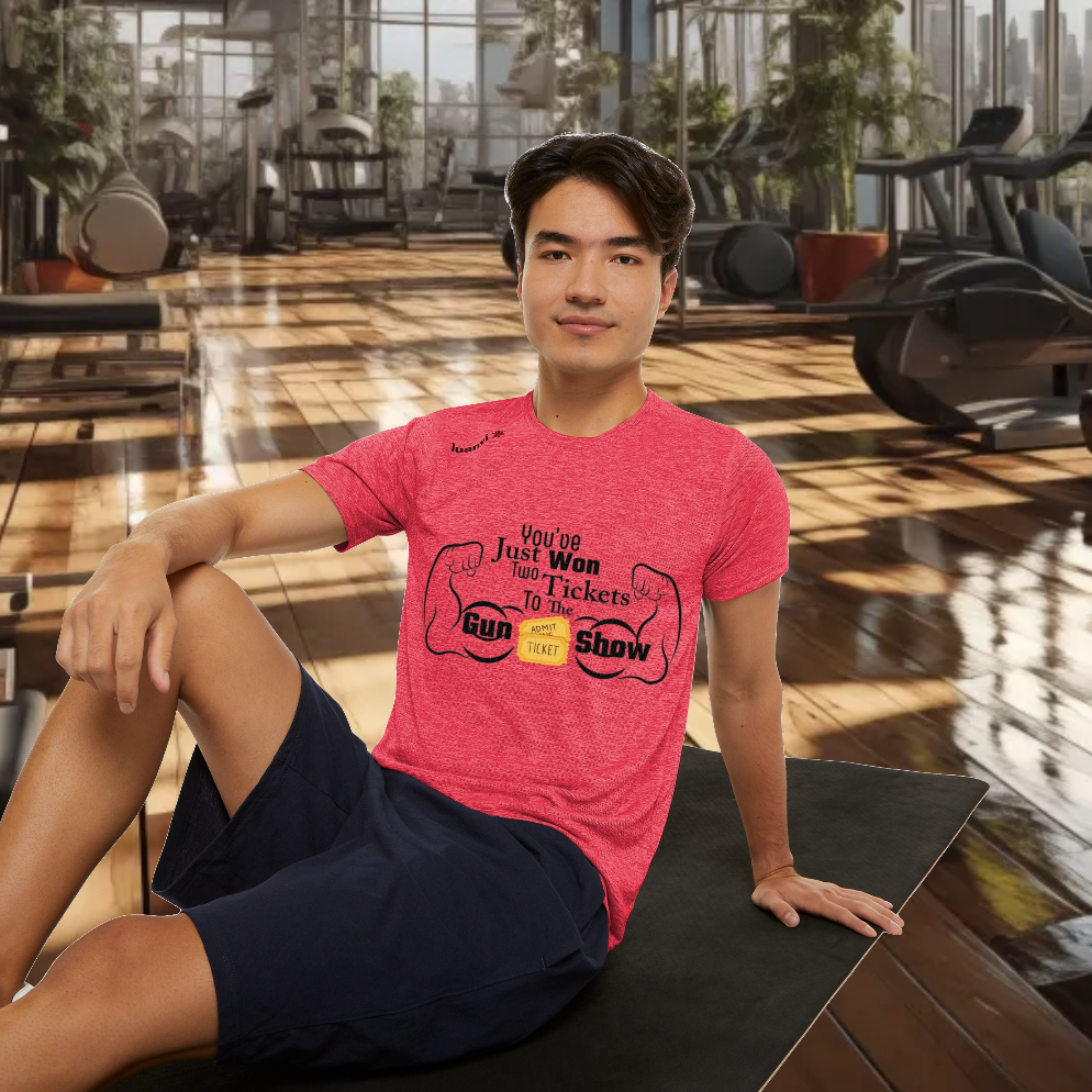 These Men's "Gun Show" Sports T-shirt are made for peak performance thanks to their 100% moisture-wicking polyester fabric that keeps the skin breathing when it's time to go the extra mile. Highly comfortable due to its high elasticity, these shirts are printed using vegan inks that are Eco Passport, certified by OEKO-TEX.