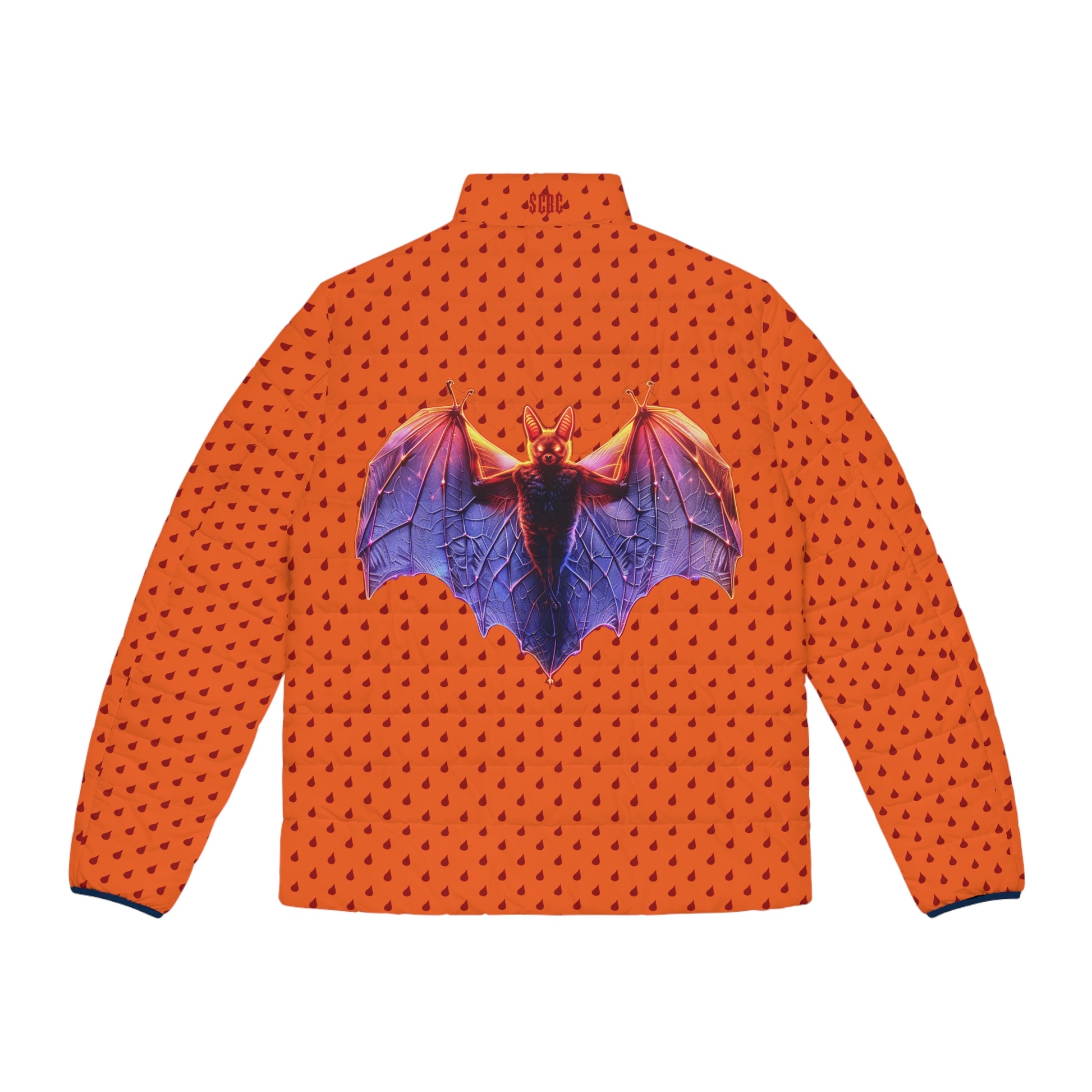 A custom Men's SCBC "Bat's Blood" Puffer Jacket (AOP) is a grade-A upgrade to any wardrobe. This one comes with a stand-up collar, quilted lining, black cuff lining, and two spacious side pockets for added practicality. Each jacket is lightweight and super soft to the touch. Choose between two zipper color choices: black or dark blue.