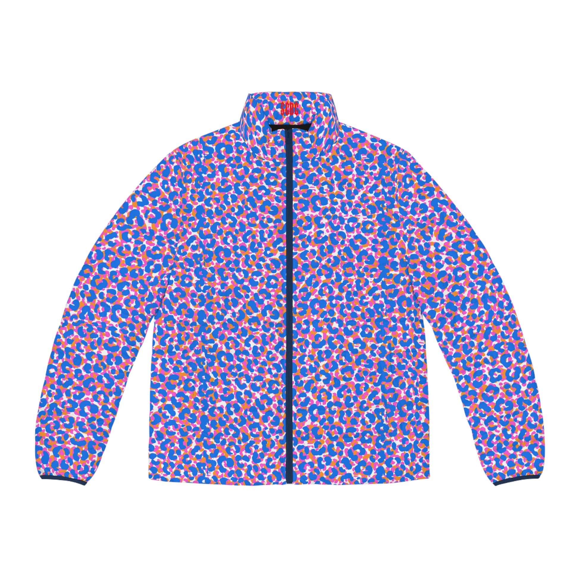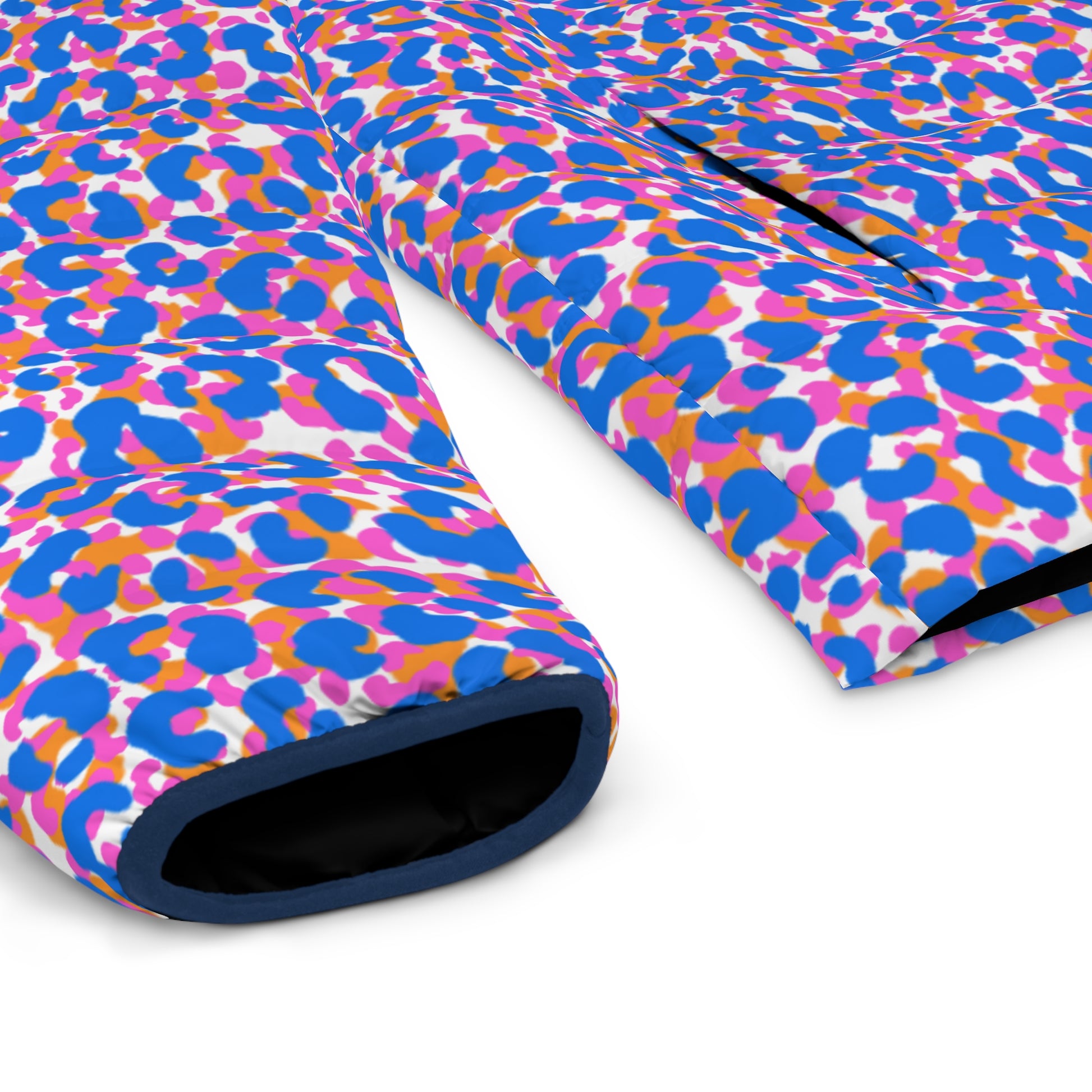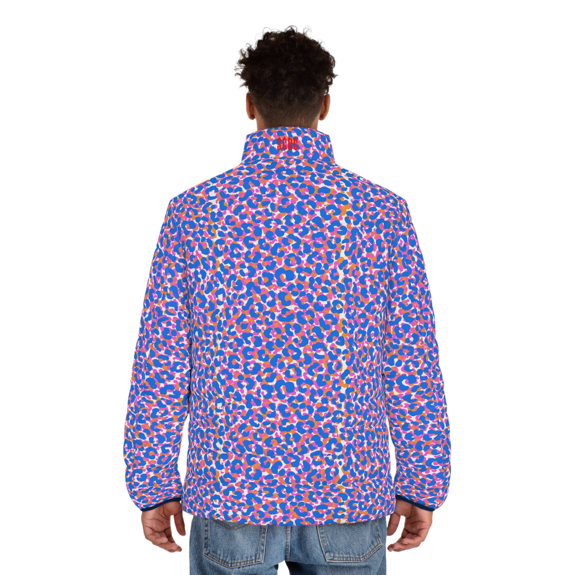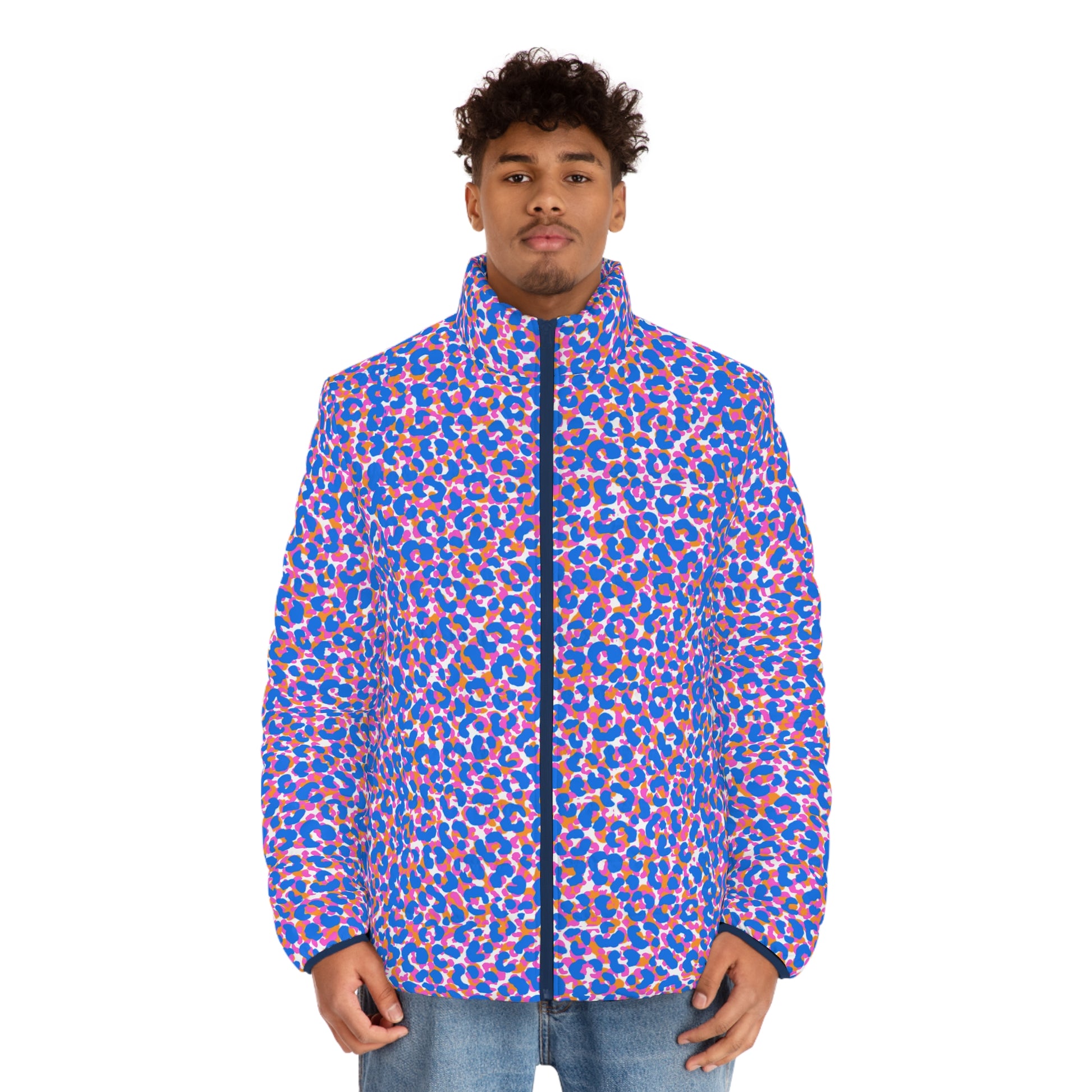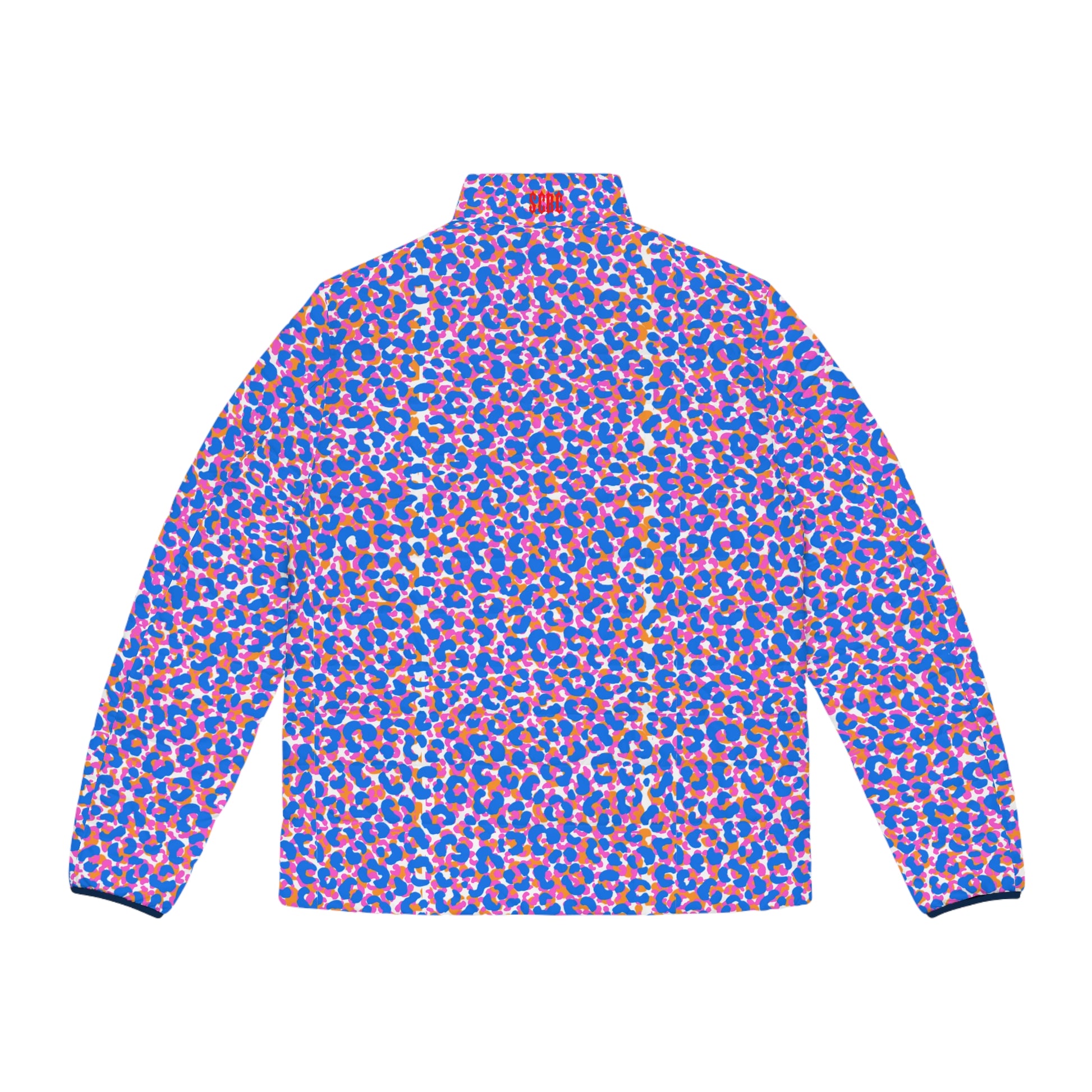 A custom Men's SCBC " Spotted Frenzy" Puffer Jacket (AOP) is a grade-A upgrade to any wardrobe. This one comes with a stand-up collar, quilted lining, black cuff lining, and two spacious side pockets for added practicality. Each jacket is lightweight and super soft to the touch. Choose between two zipper color choices: black or dark blue.