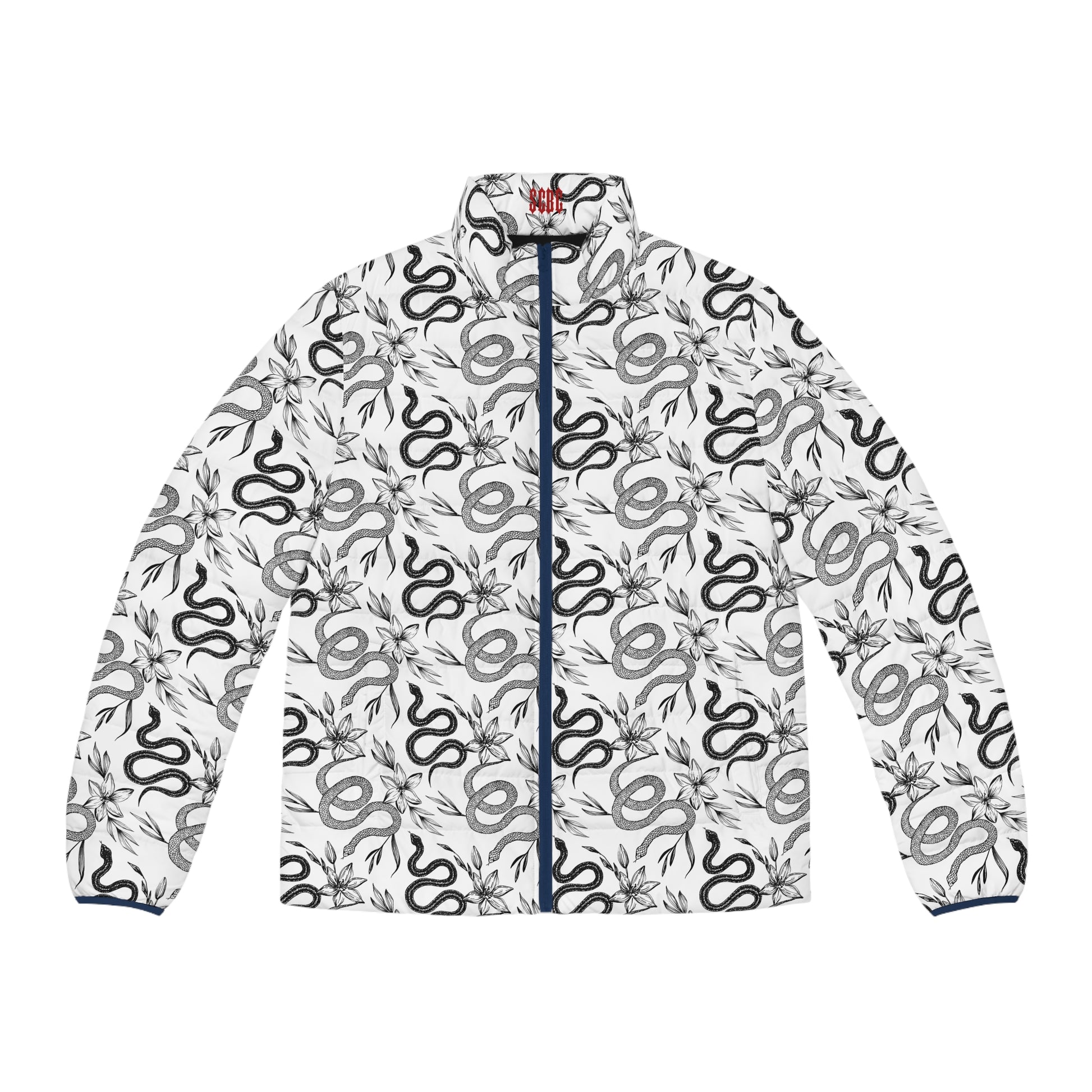 Men's "Serpentine" Puffer Jacket (AOP). Puffer Jacket, Spring, Mens Clothes, Warm Jacket, Lightweight, Snake, Graphic Design