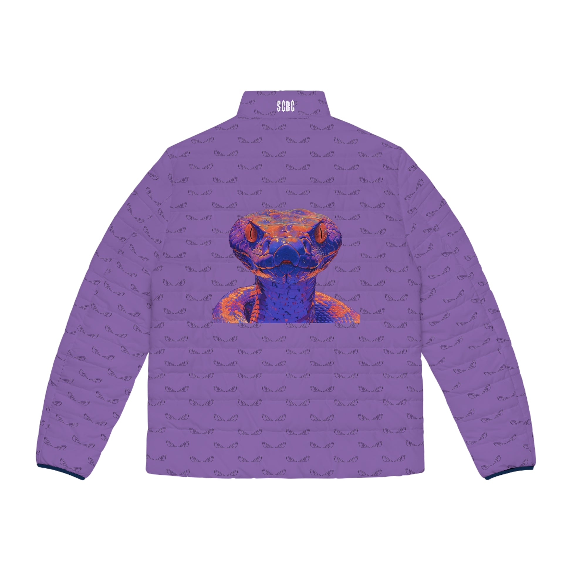 A custom Men's "Snake Eye" Puffer Jacket (AOP) is a grade-A upgrade to any wardrobe. This one comes with a stand-up collar, quilted lining, black cuff lining, and two spacious side pockets for added practicality. Each jacket is lightweight and super soft to the touch. Choose between two zipper color choices: black or dark blue.
