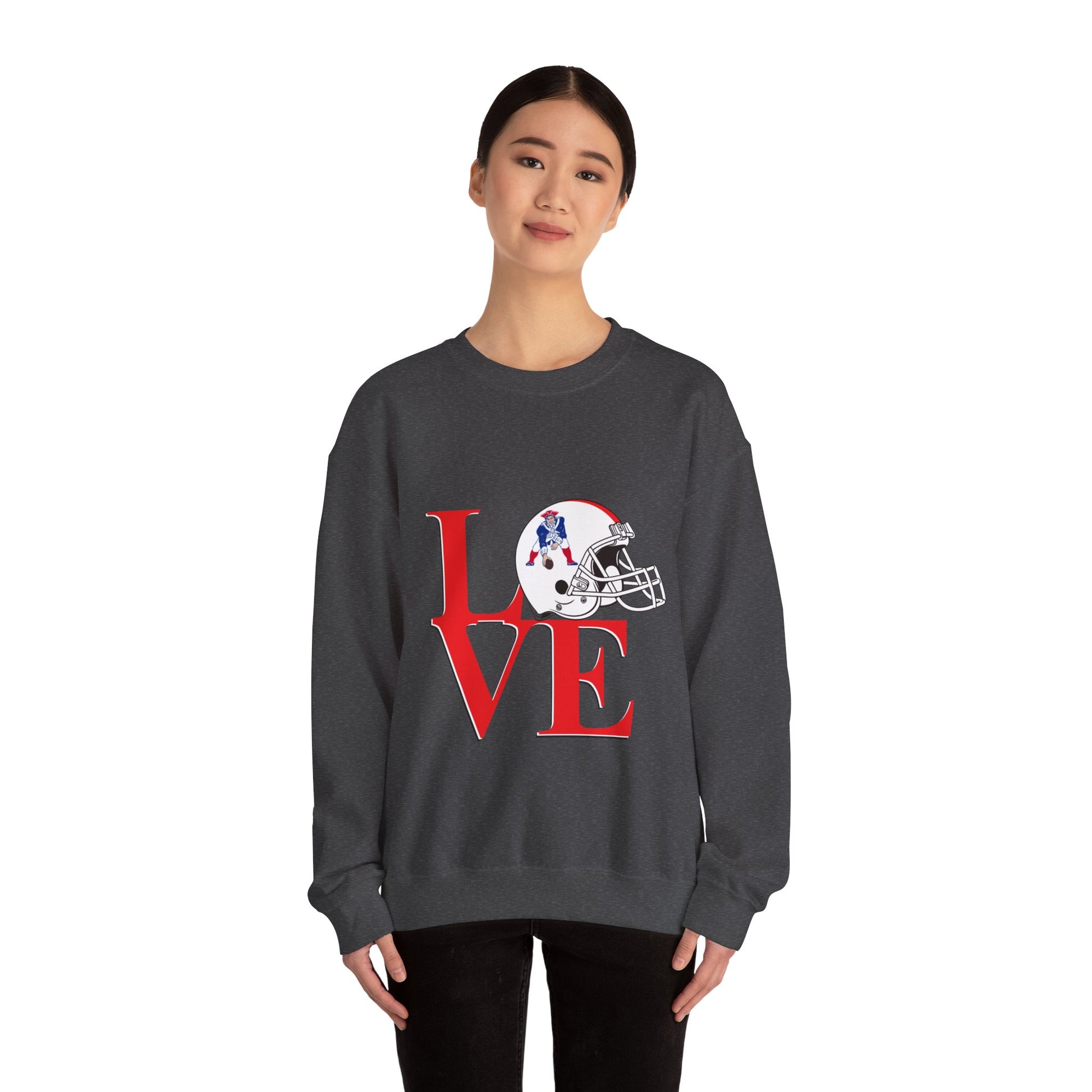 This cozy SCBC crewneck carries a quiet, sporty devotion — bold red letters spell L O V E with a vintage-style football helmet tucked into the design. It feels like standing in the stands on a crisp game night: breath visible, the crowd humming, and that steady pulse of team pride. The medium-heavy fabric drapes comfortably, the ribbed collar and cuffs hold their shape, and subtle stitching keeps the silhouette clean. Wear it to tailgates, watch parties, or just on mornings when you want to carry that team energy without shouting. The embroidered placement options add a tactile, handcrafted touch that ages well and gives the piece a lived-in, authentic feel.