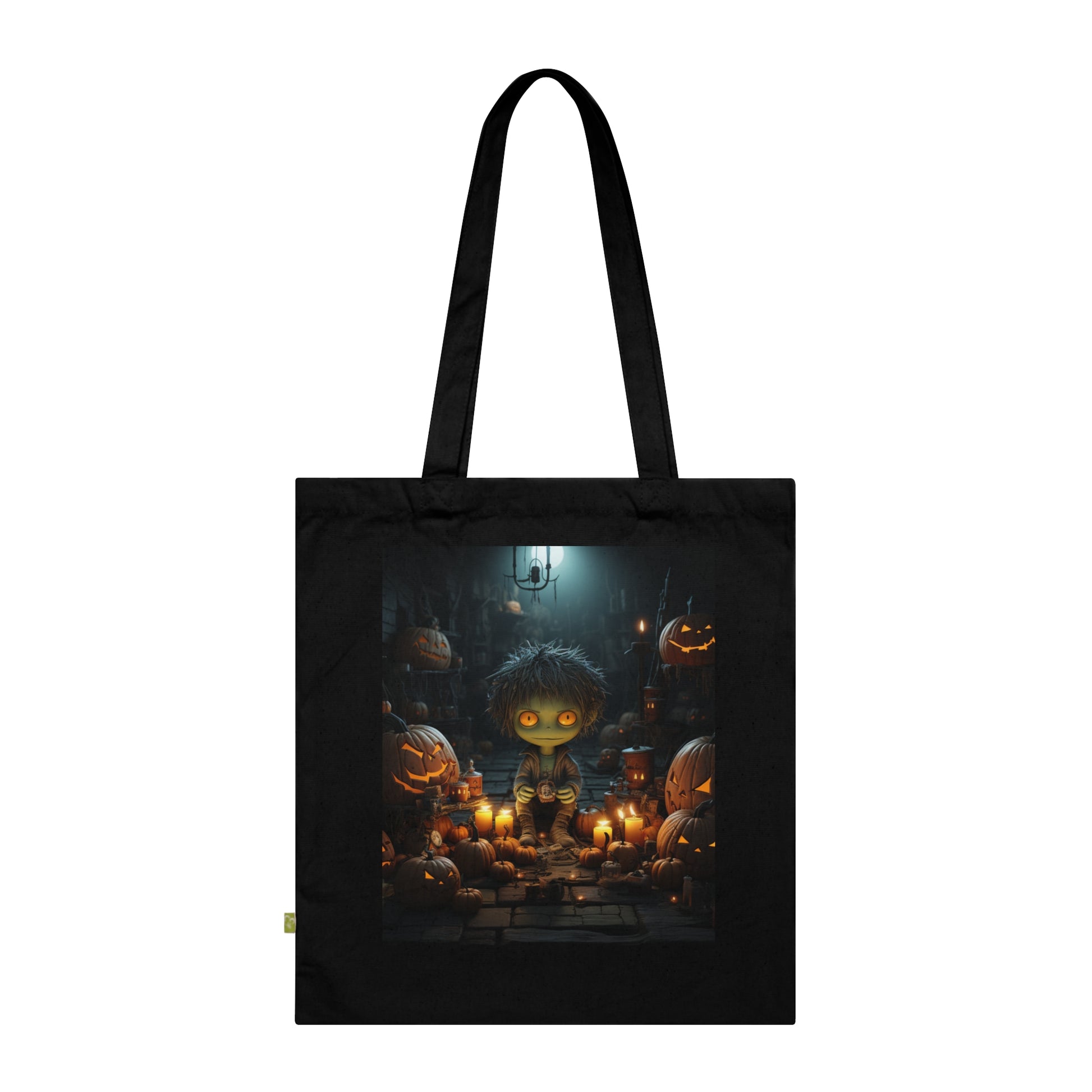 Made with highly durable, 100% organic cotton. This Halloween tote bag looks as good as it feels using it. This bag features a 26.3" (66.8cm) long handle, a 2.6 gallon (10 liter) capacity and a wow factor for eco-conscious consumers when they see your artwork printed in stunning detail.
