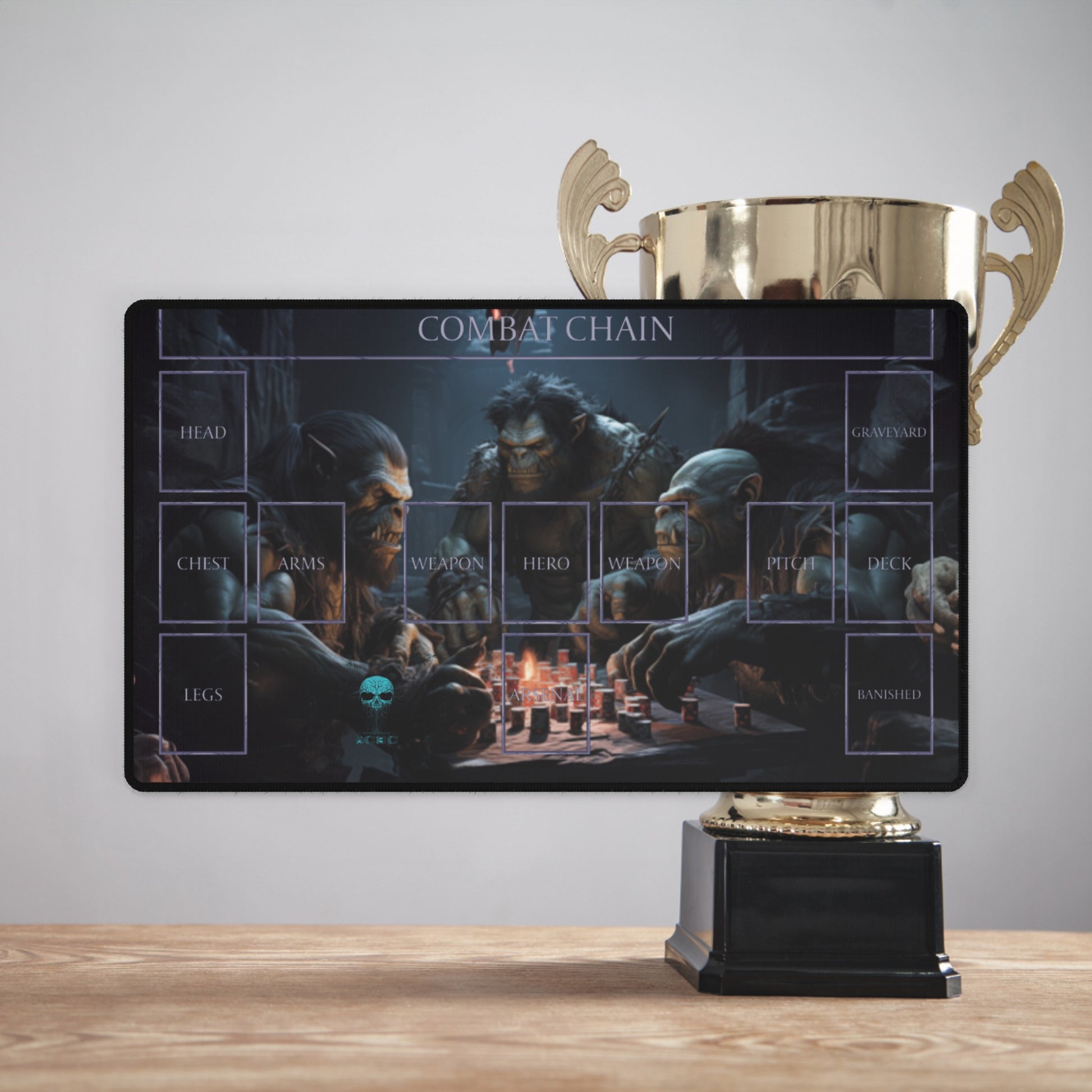 Apart from looking cool, the SCBC: Flesh and Blood "Orc Games" Play Mat keeps cards free from scratches and stains. Great for making spaces more organized with minimal effort. This SCBC: Flesh and Blood "Orc Games" Play Mat has a smooth surface and a non-slip base. They're durable and will last long without fraying or pilling.