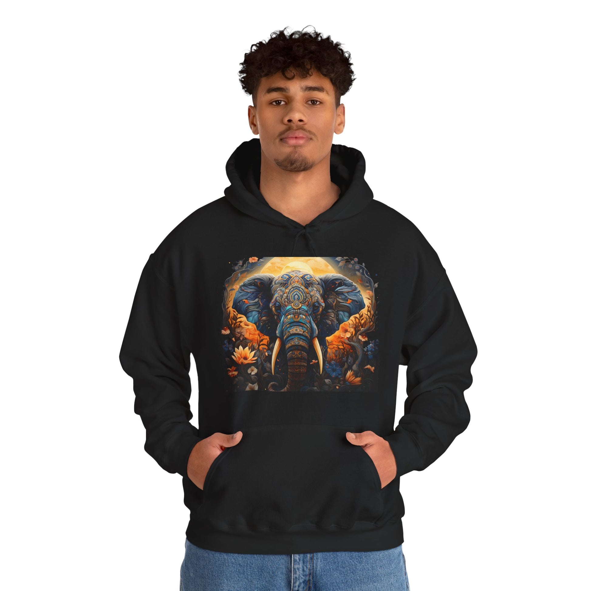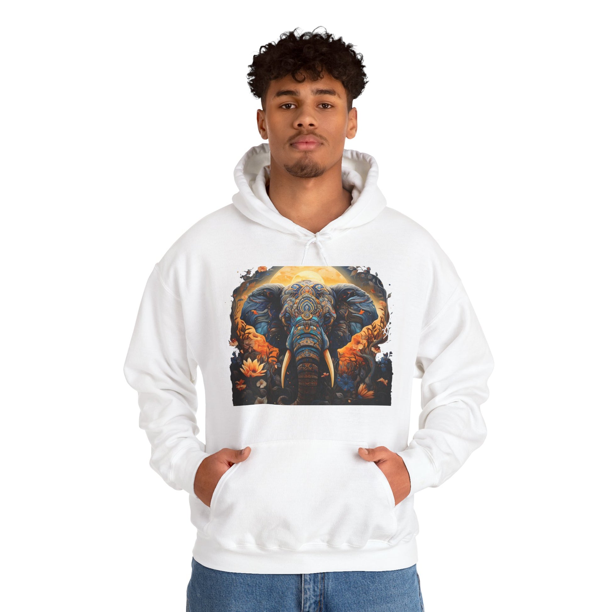 Stay cozy and stylish with this Elephant Hooded Sweatshirt. Made from a blend of 50% cotton and 50% polyester, this medium-heavy fabric hoodie offers a comfortable fit with features like a kangaroo pouch pocket, adjustable drawstring hood, and color-matched drawcord. Perfect for adults looking for a warm and durable hoodie to wear on chilly days. Great for casual outings, lounging at home, or as a gift for birthdays, holidays, or special occasions.