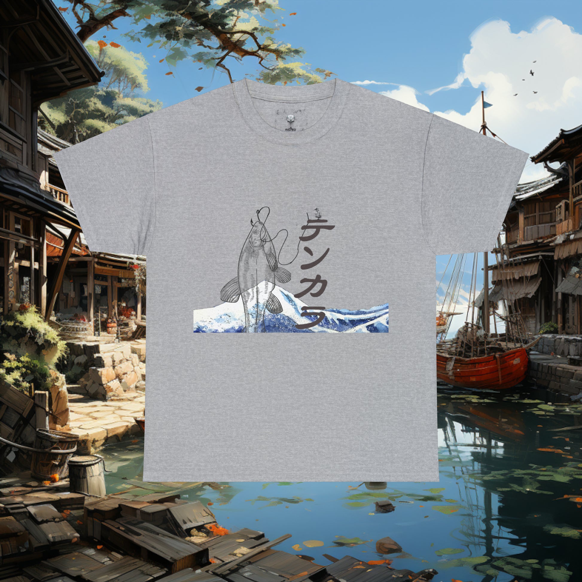 Unisex "Fly Fishing" Heavy Cotton Tee. Graphic T-Shirt, Japanese, T-Shirt, Gift For Him, Gift For Her, Fisherman, Fishing Gear,